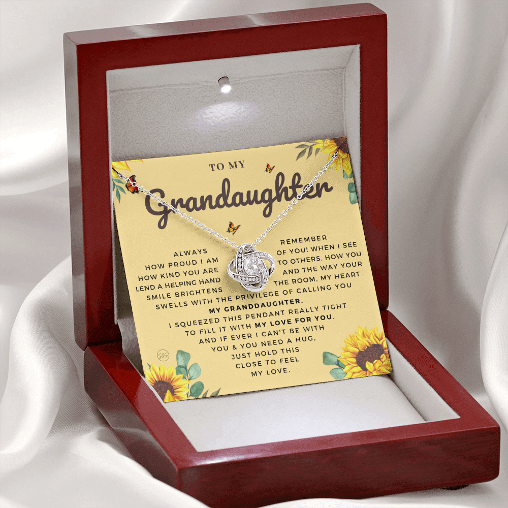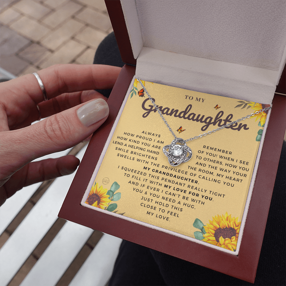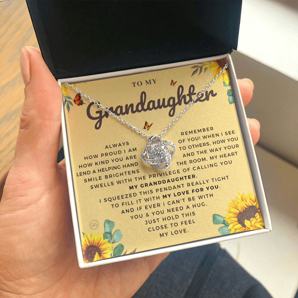 This beautiful Love Knot necklace is created specially to celebrate your granddaughter & your special bond together.